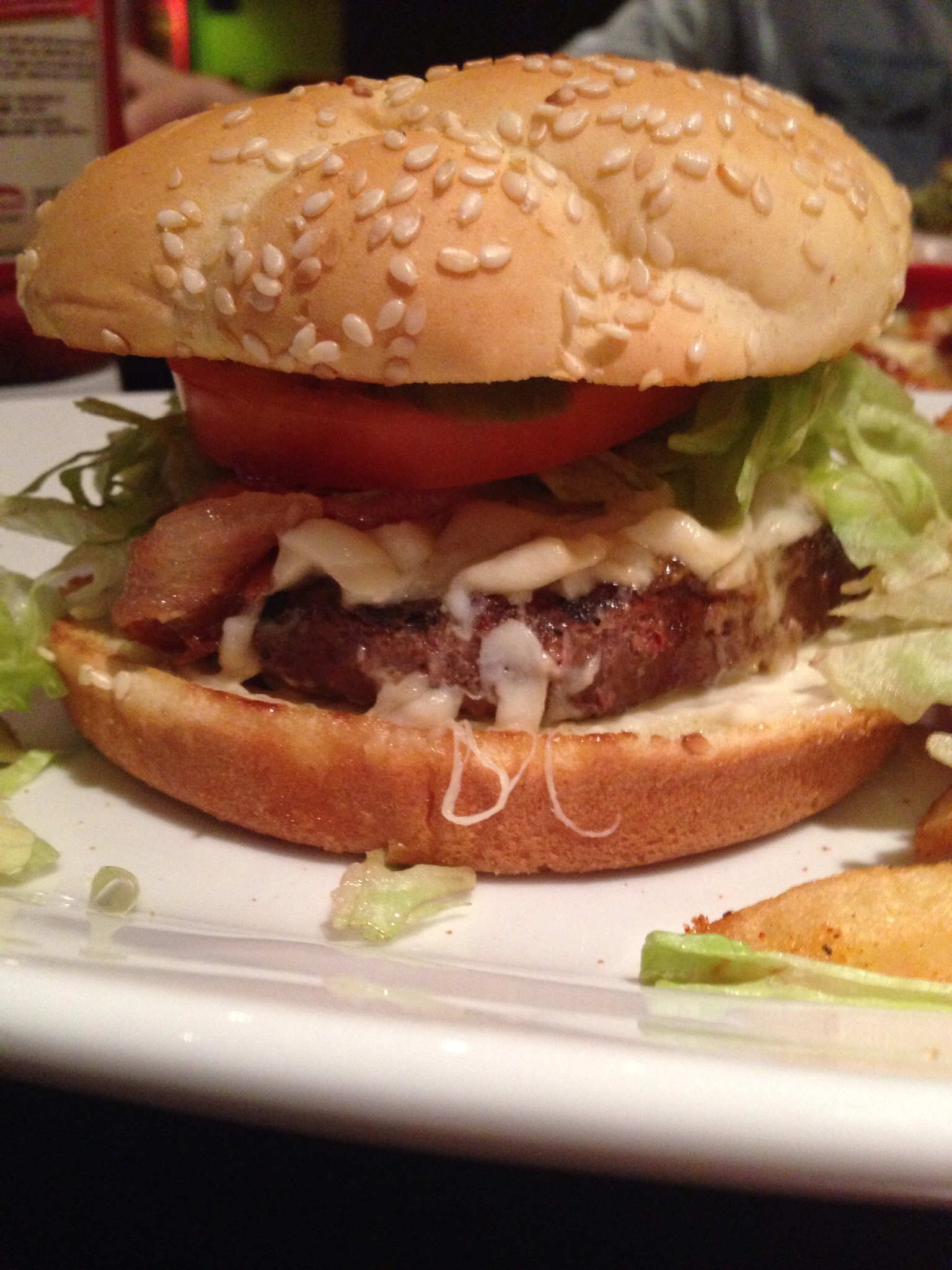 After the first bite, I realized that I had overlooked a crucial fact about this burger. I was dealing with another frozen burger patty (I didn’t confirm this with the waiter but I’m 99% sure that it was. If I am wrong, please let me know!). Despite the fact that it was frozen, it did still have quite a bit of flavour to it, which was nice, but there is still always going to be a lack of quality when dealing with a frozen patty, and this was no exception. My favourite part of this burger was the Monterey Jack cheese, but other than that the burger kind of fell flat as there wasn’t much to it. I added bacon for an extra dollar, which I would recommend because bacon makes everything better.