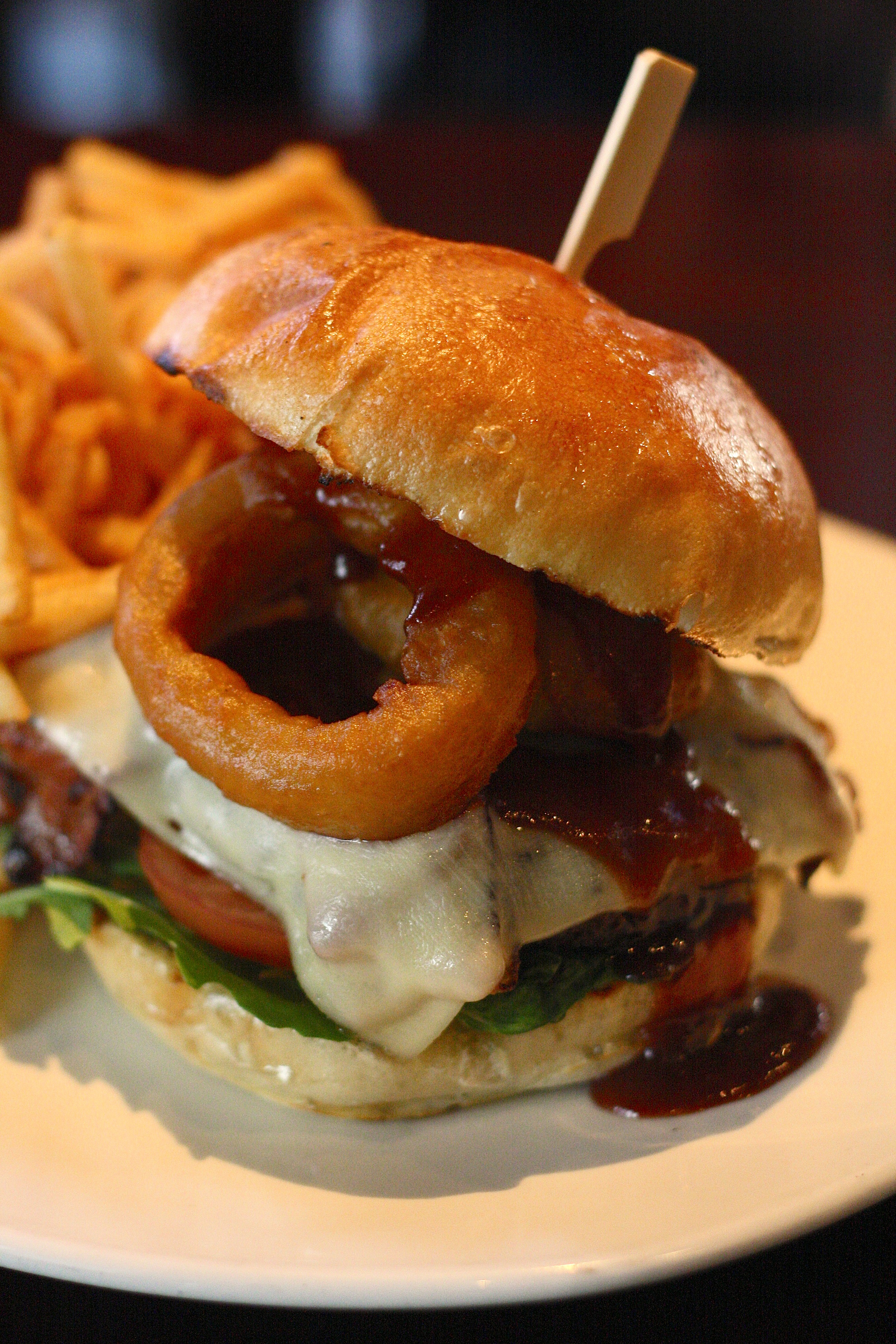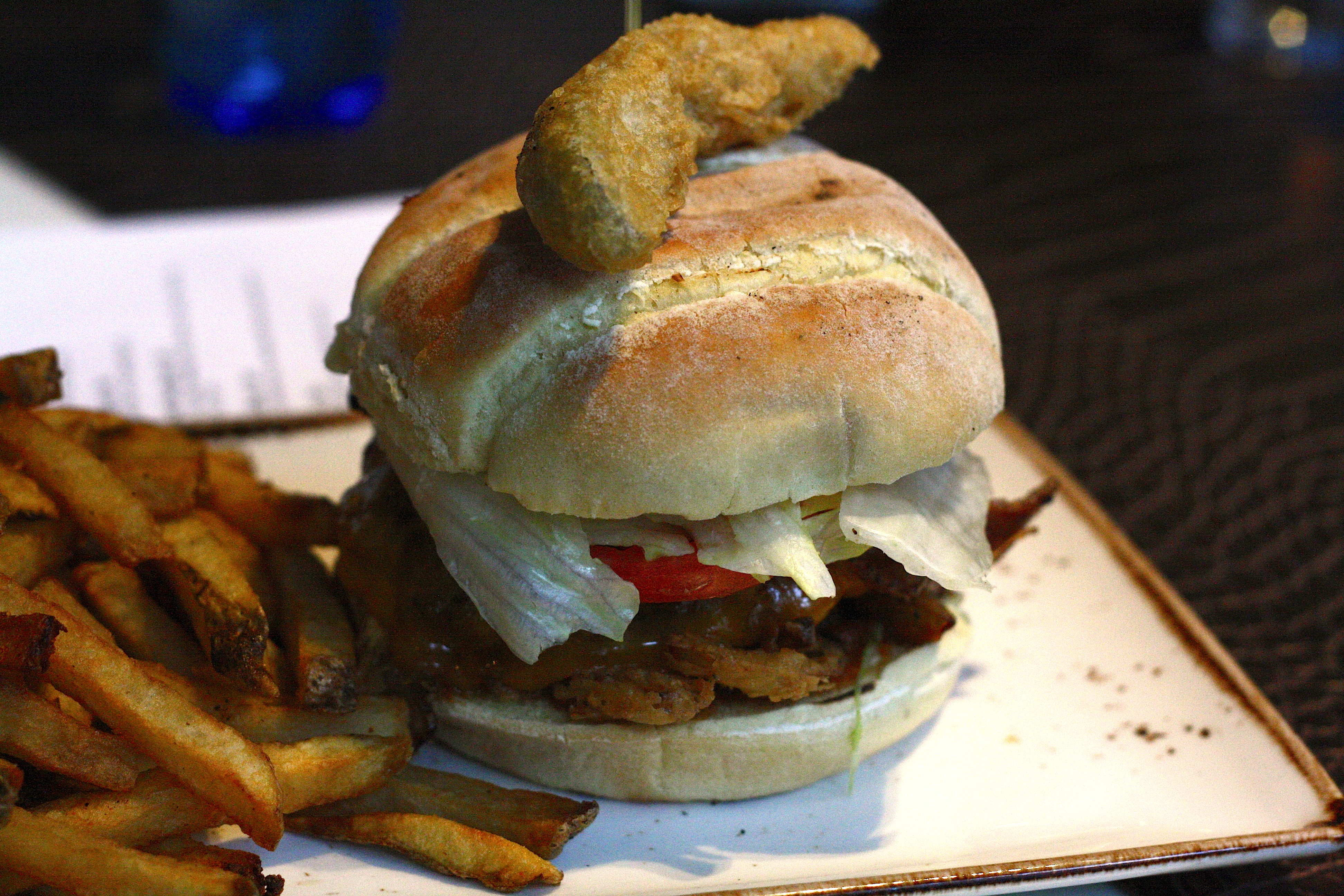 Proving that all burgers don’t have to be made from beef is the Chipotle Turkey Burger from The Old Triangle. The turkey patty was seasoned really well, and it allowed the flavour of the turkey to shine. The chipotle mayo gave the burger the nice little kick that it needed. We were under the impression that this burger was supposed to have guacamole on it, but ours definitely didn’t, so we aren’t sure what happened there. Also, this bun crumbled quite a bit, and sadly, it didn’t hold together very well. Still a pretty decent turkey burger.