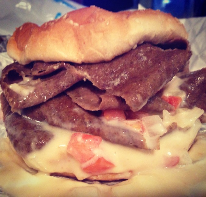 This burger is similar to the one offered by Mezza, in that if you’ve had the donair at Johnny K’s, you’ve basically already had this burger. The bun is the difference here and it wasn’t completely able to hold its own against the messy traditional donair toppings. There was so much of the delicious donair sauce that the bun got soggy very quickly. I love donair meat as much as the next person, and there was a huge pile of it on this burger, but it was on the line of being too much (I know, blasphemy!). My personal feelings were that they could have lessened the amount of meat so that things were a bit more even, and in turn this would have been a perfectly balanced donair burger.