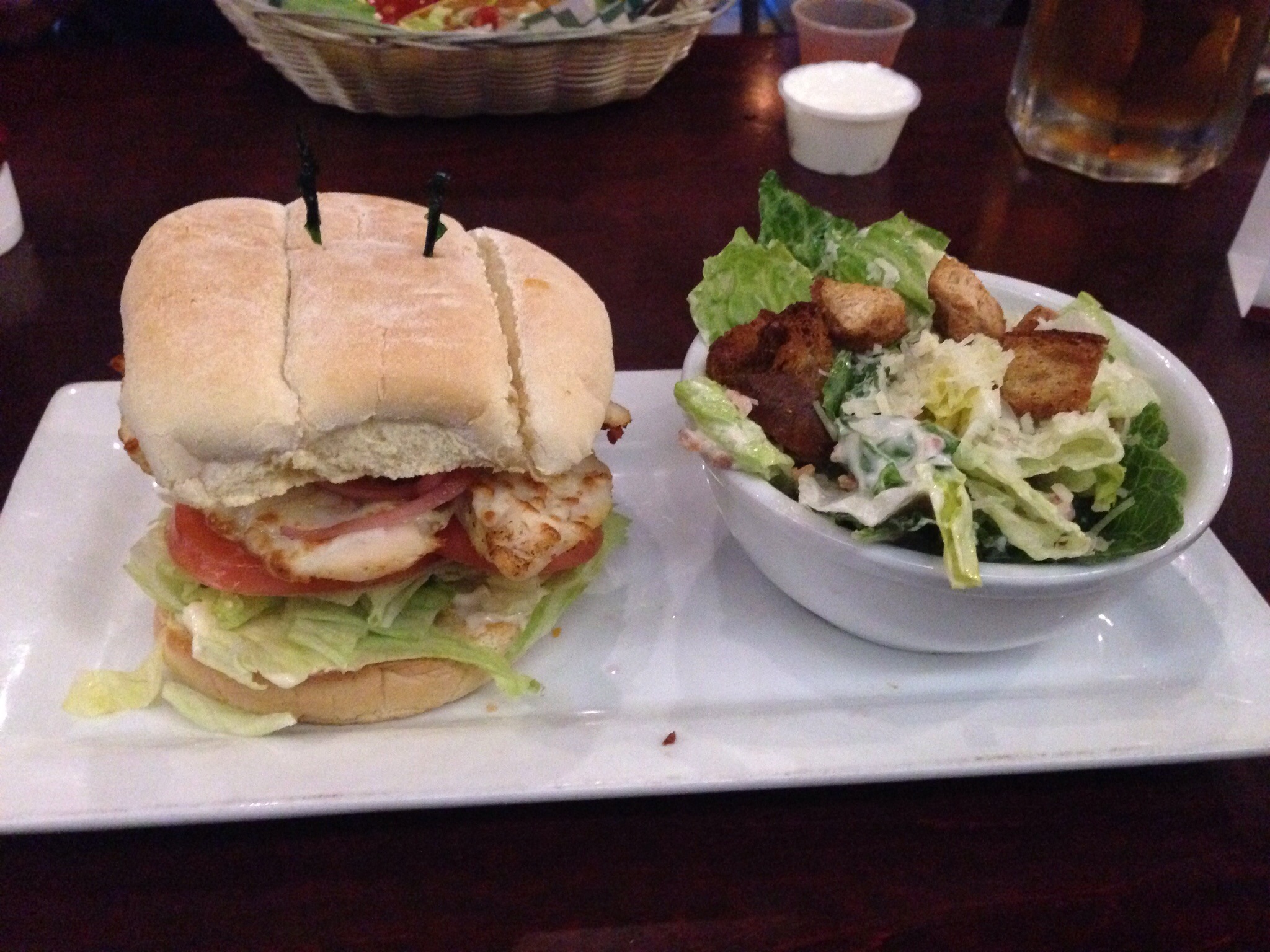 From the menu: “Juicy slow-roasted chicken, mozza, basil mayo, lettuce, tomato and balsamic vinaigrette”